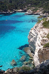 Menorca takes its name from being smaller than nearby island of Majorca. It was called Nura by the Phoenicians in honoring their god Baal, meaning the "island of fire". Minorca has a population of approximately 82,000. Its highest point, called Monte Toro, is 358 m/1174 ft above sea level.